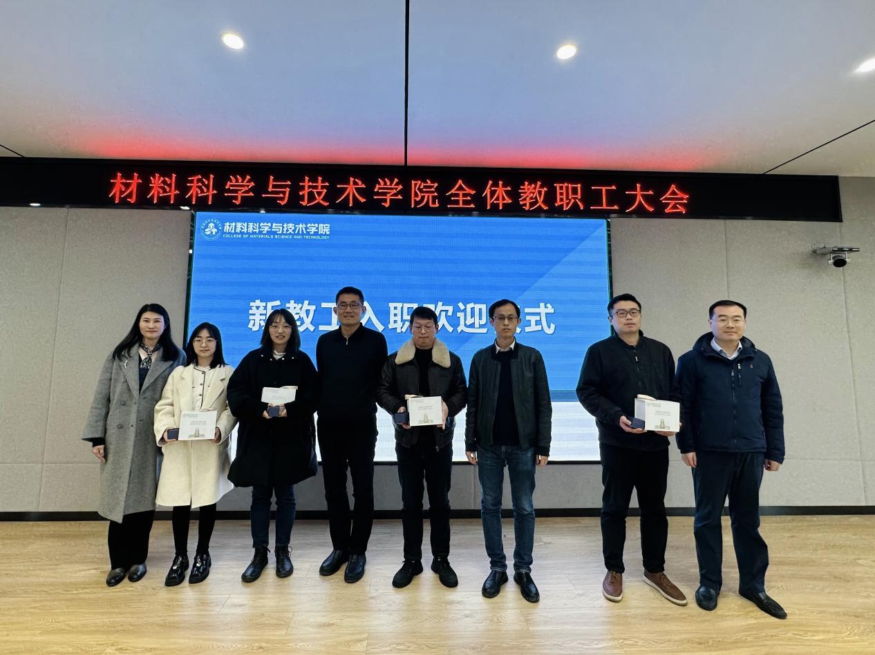会上,学院还举行了新教职工入职欢迎仪式,对朱艳萍、黄国强、许志恒、赵艳秋四名新教师入职学院表示热烈欢迎,院党委副书记庄晓舒、副院长郭训忠、常树全、申来法受邀担任他们的启航导师,并为他们送上学院院徽及入职礼物。