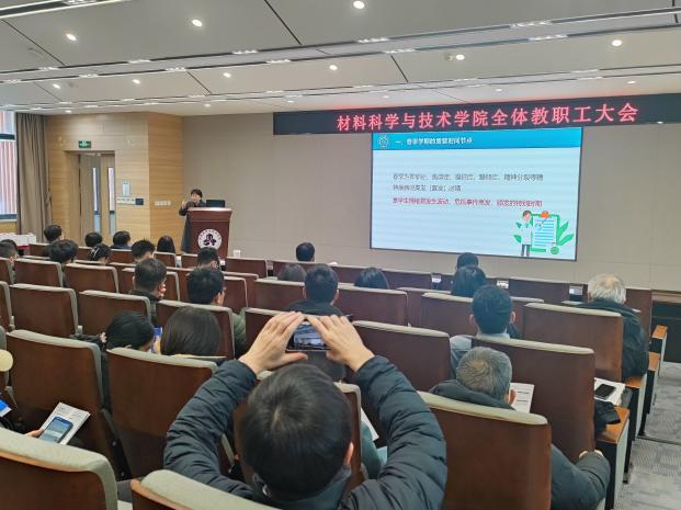 会前,学院特邀我校心理健康中心主任杨雪花教授做专题培训,她对材料学院学生心理健康情况做了分析并给予针对性建议,对教师如何自我调节缓解压力给予指导。她表示,当前学生心理健康教育和安全教育任重道远,老师们作为“全员育人”重要组成部分,需要紧密关注学生的心理健康状态,为学生健康成长保驾护航。