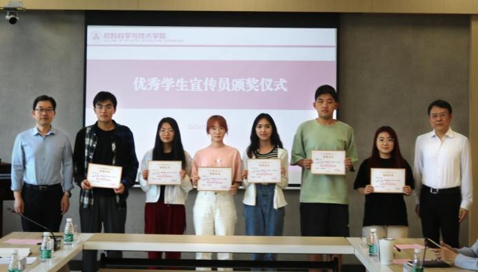 会上,为表彰在院官微运营工作中表现优异的同学,石勇、顾冬冬为学生代表颁发“优秀学生宣传员”荣誉证书。勉励同学们未来继续努力,进一步提升公众号管理与运营水平。