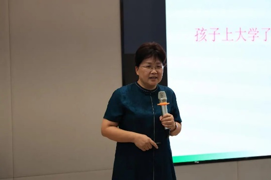 校心理教育中心主任杨雪花为家长做心理健康教育讲座。她从新生入校后,家长如何做好身份转变为切入点,向家长介绍了如何在思想、心理、身份上的转变。她指出,家长要主动了解孩子在校情况,用鼓励、理解和尊重引导孩子尽快适应大学生活,增进和孩子的良好沟通,和学校一起为孩子塑造阳光心态保驾护航。