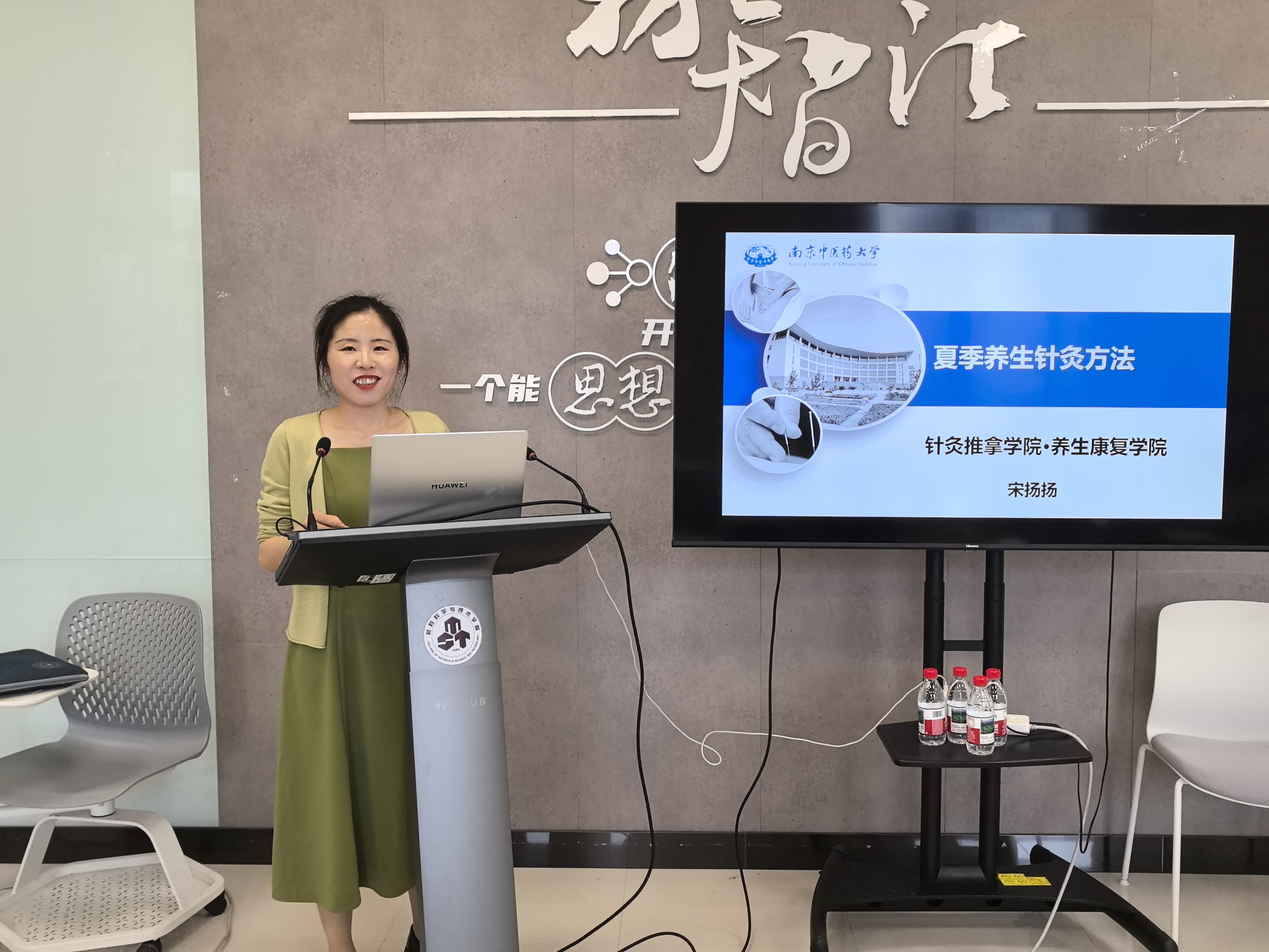 活动伊始,宋扬扬老师以《夏季养生针灸方法》为题,她从中医理论与实践出发,介绍夏季人体阳气旺盛、代谢活跃,容易引起湿热等问题。依据《黄帝内经》“天人相应”理念,宋老师指出夏季养生要把握“清热解暑、调养脾胃、平衡阴阳”,还从起居、饮食、经络调养等方面,为教职工给出实用建议。