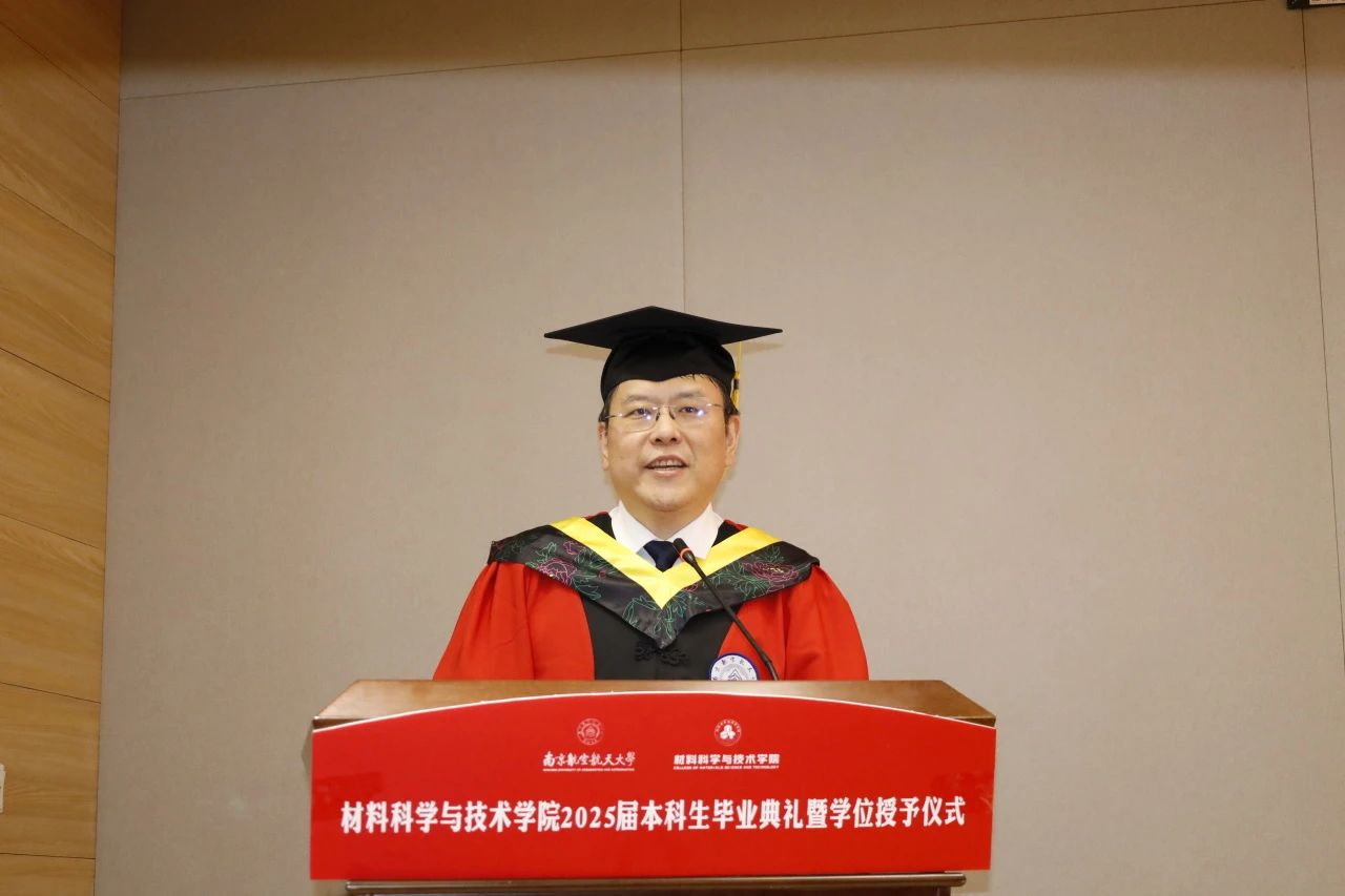 院长顾冬冬向253名毕业生表示祝贺,并向师长、家长表示衷心感谢。四年间,材料学子怀揣梦想与学院并肩前行,为学院发展增添了生动注脚。他以三组“留下与带走”寄语毕业生:留下青涩懵懂,带走从容笃定与时代淬炼的精神力量;留下努力汗水,带走“格物穷理”“知行合一”的创新密码;留下校园记忆,带走投身国家战略领域的家国情怀。