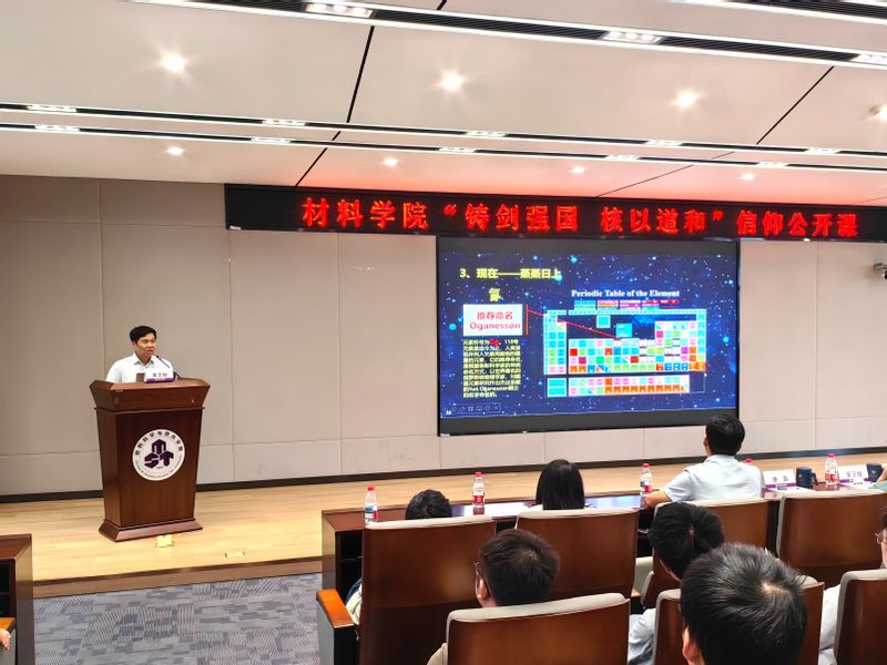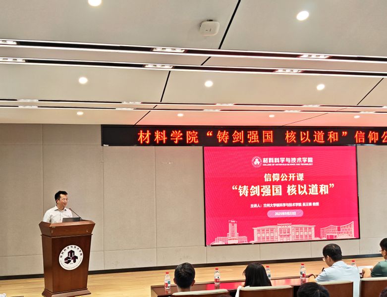 9月22日,必威BETWAY西汉姆联“铸剑强国 核以道和”信仰公开课在东区材料楼501报告厅顺利举行。本次活动由学院核科学与技术系教工党支部主办,特邀国家级教学名师、兰州大学吴王锁教授担任主讲嘉宾。校党委副书记刘宇雷,材料学院党委书记张亚丽、副书记庄晓舒,核科学与技术系教师及学生200余人参加活动。活动由张亚丽主持。