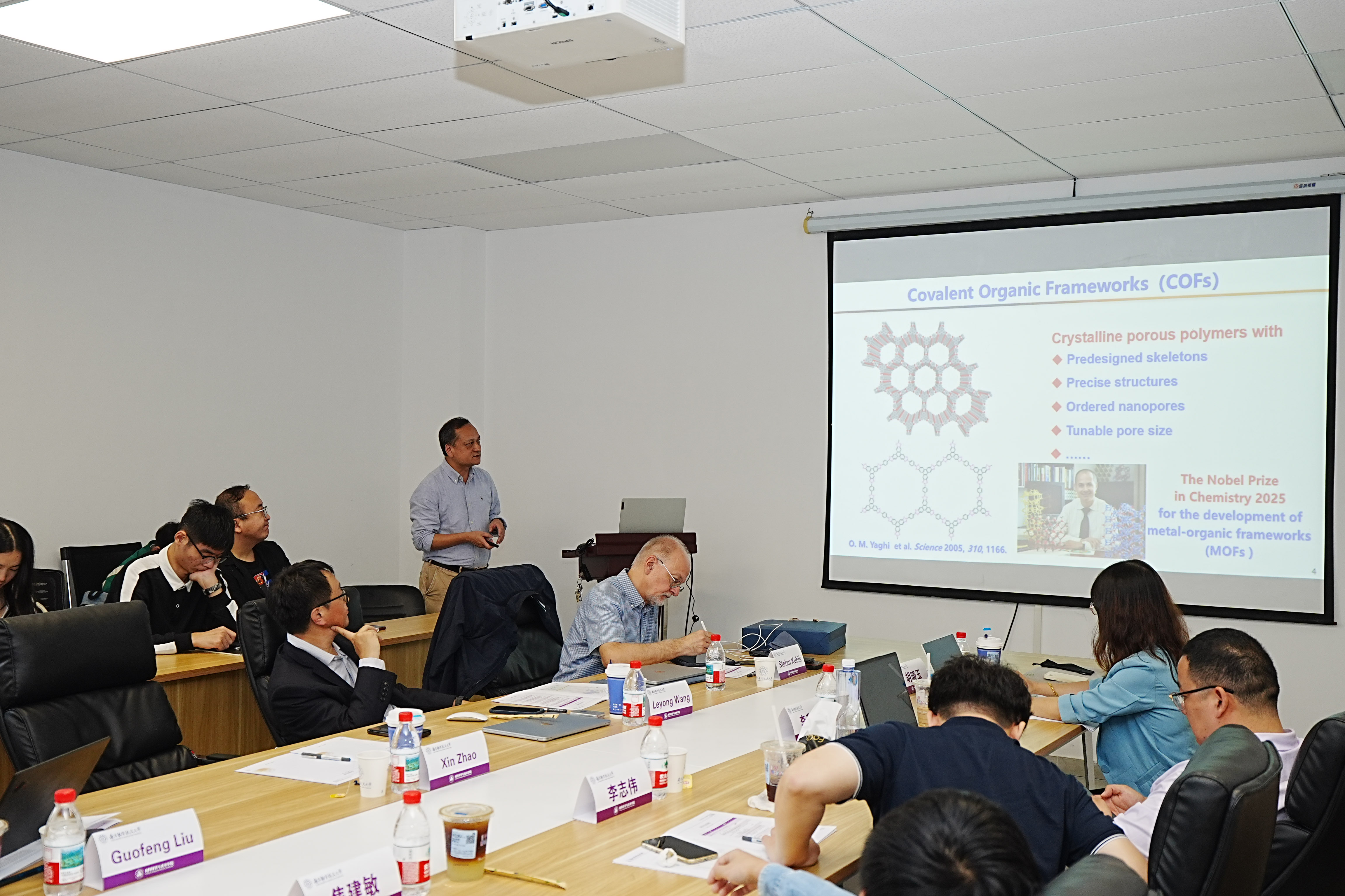 在学术报告环节,中德两国专家学者围绕超分子组装的调控机制、功能材料的精准构筑等核心议题展开了深入交流,系统分享了各自领域的最新研究成果,现场学术氛围浓厚。德国凯泽斯劳滕大学Stefan Kubik教授系统阐述了环肽分子在超分子识别中的创新性应用,其前沿研究引发了与会者的热烈讨论与深度互动。南京大学王乐勇教授详细介绍了具有空腔内活性结合位点的功能性大环芳烃在分子识别与催化反应中的潜在应用价值,为新型超分子功能材料的设计提供了重要思路;东南大学赵新教授则聚焦于共价有机框架材料的高效合成策略及其在储能与分离领域的实际应用前景,研究成果展现出显著的产业化潜力。此外,同济大学刘国锋教授、南通大学李升可教授、BETWA西汉姆联王开亚副教授,以及江西师范大学青年教师李志伟、焦建敏、田雪琪等分别就超分子手性调控、新型芳烃合成方法、超分子纳米反应器构建等前沿方向作了专题报告,进一步拓展了会议的学术广度与研究深度。