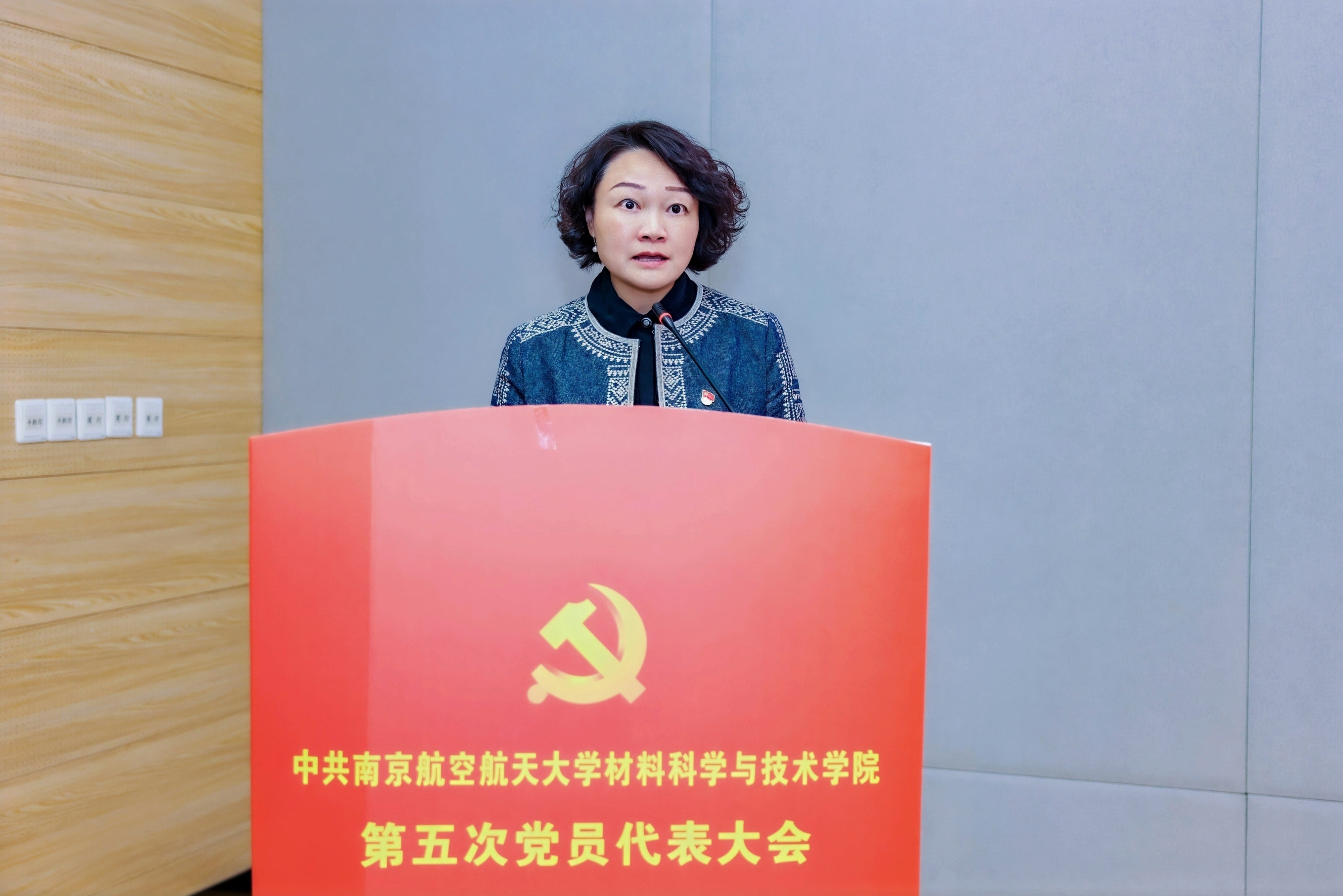 徐正扬代表学校党委向大会的召开表示热烈祝贺,对过去六年学院党委取得的成绩给予充分肯定。他希望学院党委以本次大会为新起点,深入学习贯彻习近平总书记致南航建校70周年重要勉励精神,在学校党委的坚强领导下,抢抓机遇、乘势而上,在支撑学校世界一流大学建设、服务国家重大战略需求的新征程上取得更高质量的发展。他同时对学院今后的工作提出三点希望:一是坚持党建领航,筑牢高质量发展坚实根基,在“把方向”上体现更高站位,在“强根基”上拿出更实举措,在“聚合力”上激发更强动能。二是瞄准重大需求,勇担材料强国时代使命,要有“三航急需”“国防急需”“时代急需”的响应度,强化顶层设计,优化学科布局,坚持“四个面向”,统筹前沿探索,在国家重大需求与关键技术突破中勇挑重担。三是抢抓发展机遇,创建人才荟萃一流学院,进一步提高拔尖创新人才培养质量,进一步加强师资队伍建设力度,进一步优化人才成长环境,为国家重大工程和产业发展提供人才支撑。