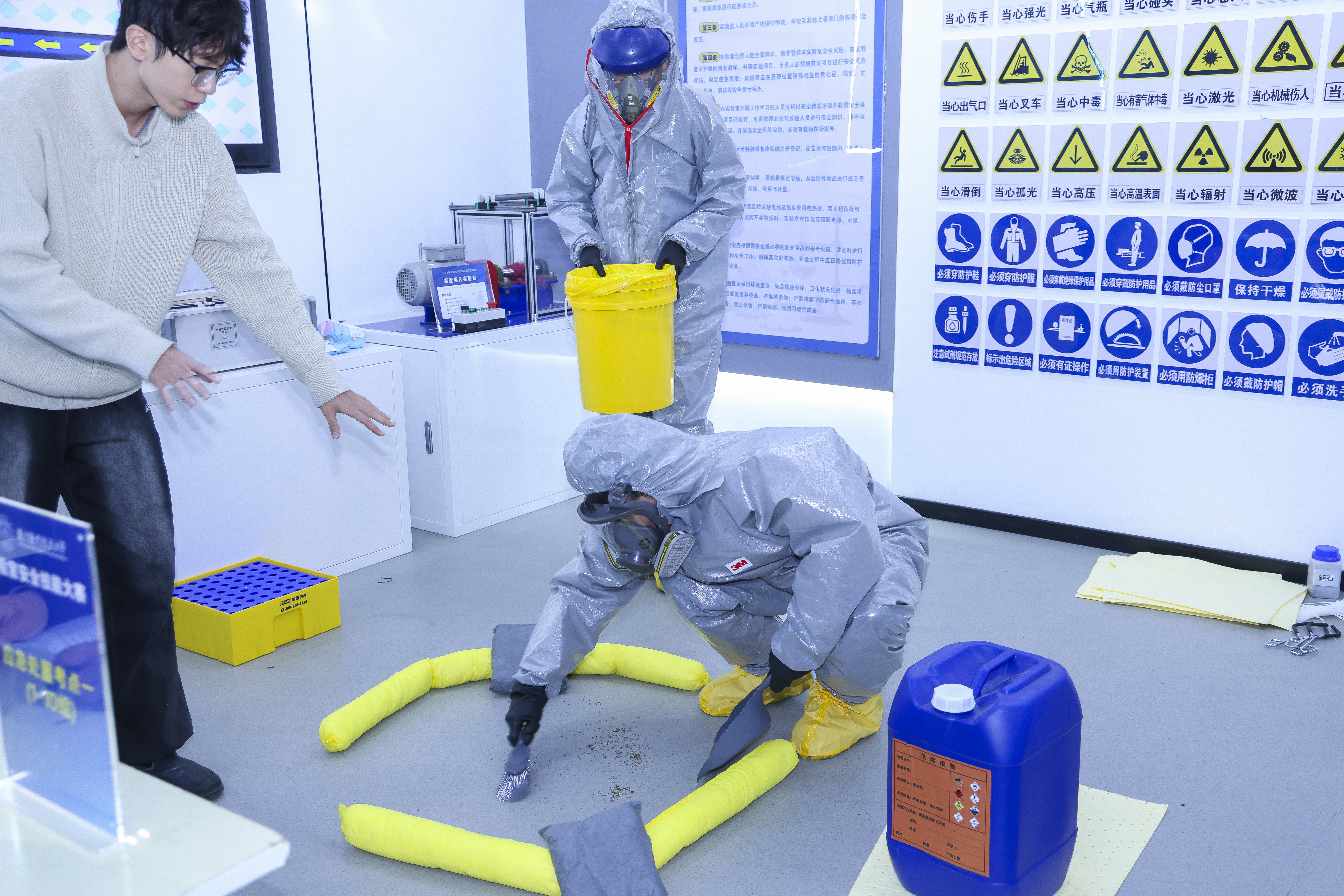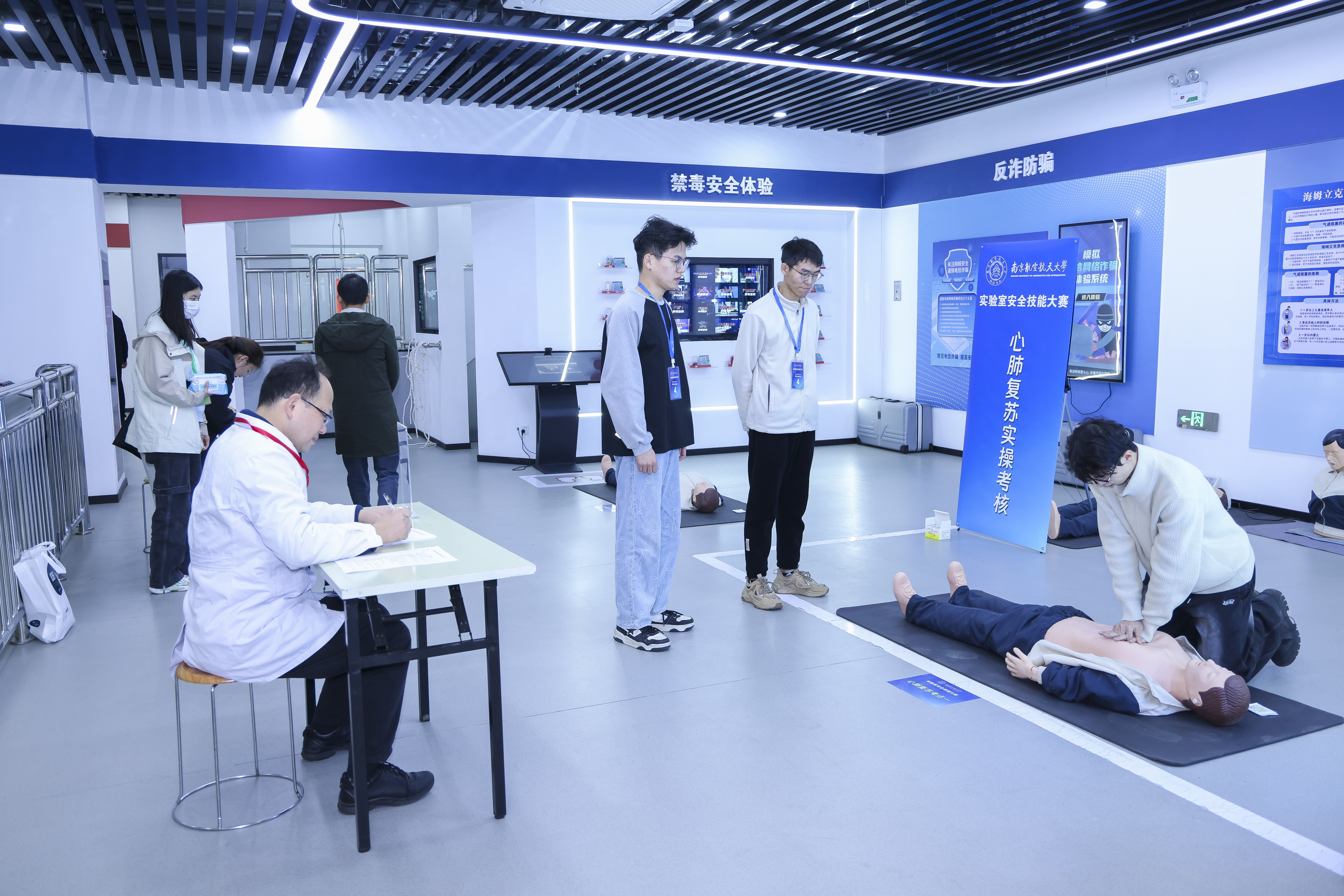 本次大赛以“强技护航守底线,以赛赋能保安全”的精神为核心,设置实验室安全知识答题、沉浸式现场实操考核两大环节,涵盖实验室隐患排查、危化品泄漏应急处置、心肺复苏操作等多个实战项目,全方位考察参赛选手的安全理论水平与应急实操能力。