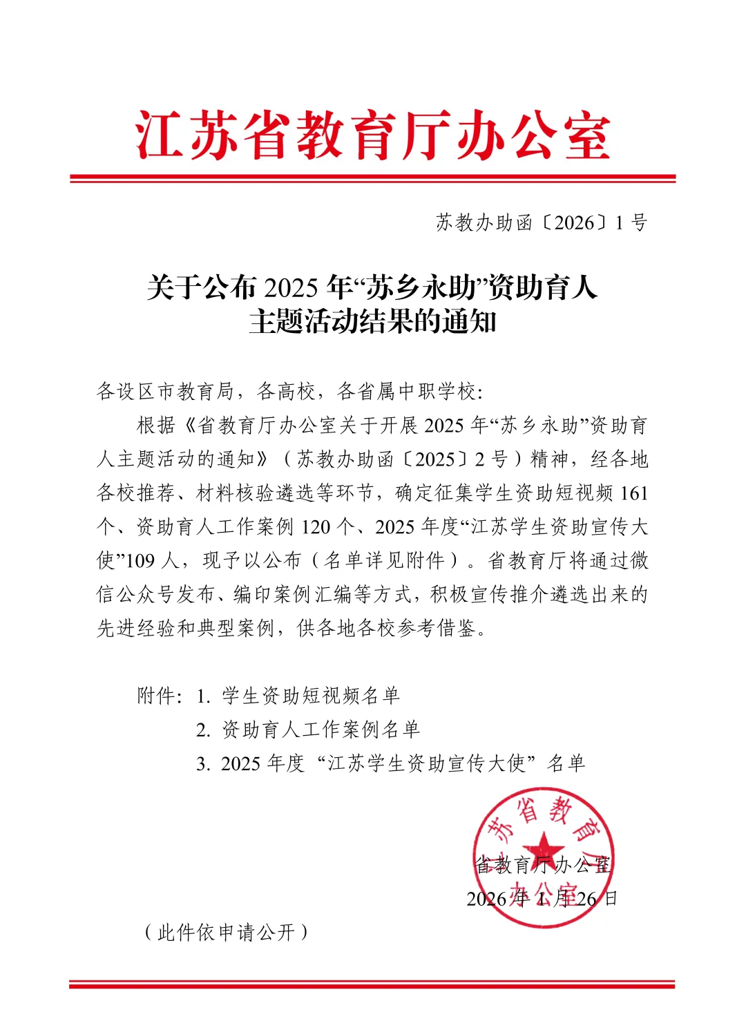 近日,江苏省教育厅办公室发布《关于公布2025年“苏乡永助”资助育人主题活动结果的通知》,我院2022级核工程与核技术专业本科生毛钰丰同学荣获“江苏学生资助宣传大使”称号。
